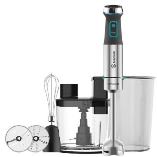 Конструкция Тип: погружнойМатериал погружной части: металлМатериал корпуса: металл/пластикЧисло скоростей: 20Дополнительные режимы: турборежимДополнительные возможности: венчик для взбиваниядиск для измельчения/шинковкиизмельчительмерный стаканХарактеристики Мощность блендера: 1500 ВтЕмкость измельчителя: 1,5 лЕмкость мерного стакана: 0,8 лГабариты Высота: 27 смШирина: 23,3 смГлубина: 21 смПараметры товара заполняемые вручную Гарантия: 24 мес